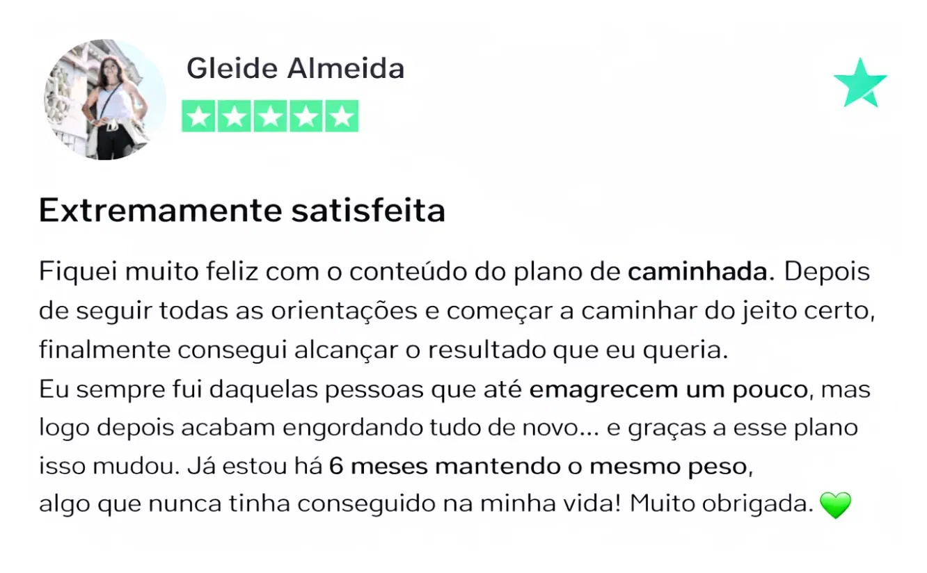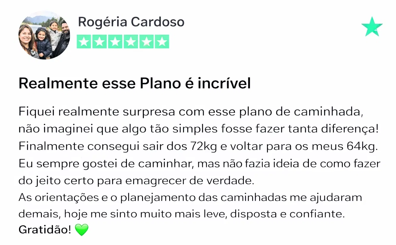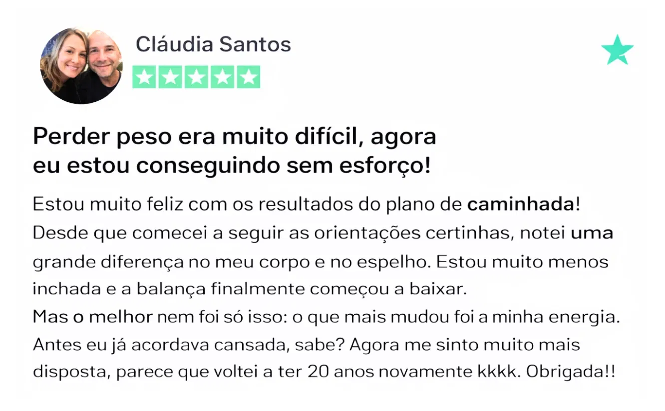 “Adorei como o plano se adapta à minha rotina. Caminhar virou um hábito leve e prazeroso, não uma obrigação.”