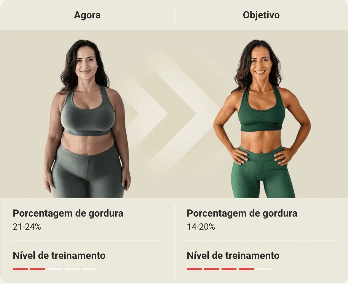 Análise de progresso clara e visual, feita para te manter motivado e no controle da sua evolução.